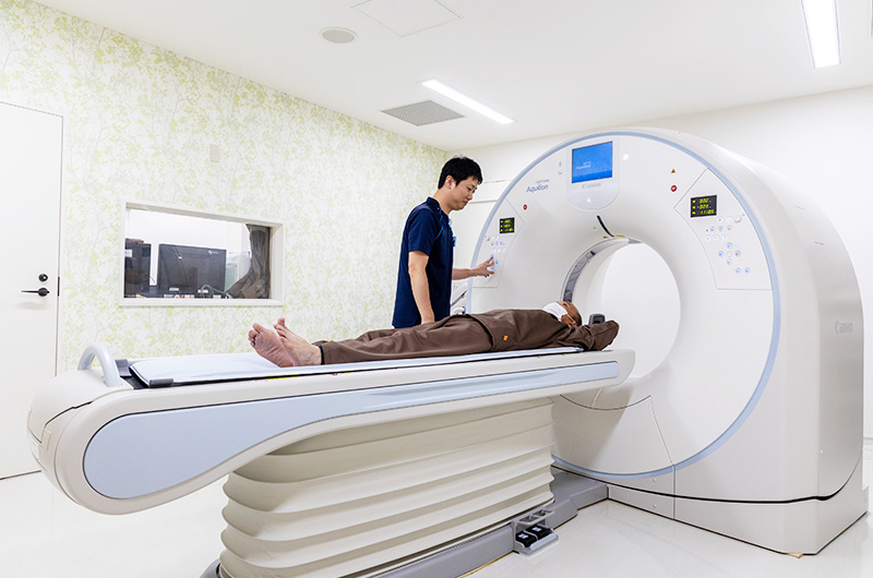 当院では、最新鋭のCanon社製16列マルチスライスCT装置を使用し、当科所属の日本X線CT認定技師が被ばく線量・撮影方法管理を行なっており安心して検査をお受けして頂く環境を整備しております。